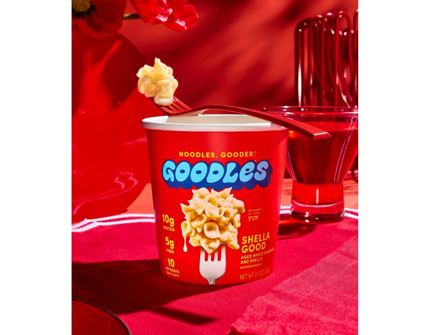Goodles launches New high-protein Mac & Cheese cups packing 10-11g of protein and 5-6g of fiber in each cup. Cheddy and Shella Good Mac Cups are available for purchase on their website and are rolling out to retailers like Costco, Target, and Walmart.